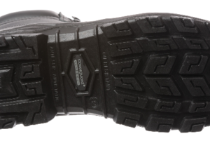 AVANTAGES : *Crampons saillants : adhérence et accroche sur sols accidentés. *Canaux d’évacuation des liquides et de la boue. *Talon décroché 1 cm et arêtes latérales : grip renforcé pour maintien sur échelle. *Renfort avant TPU.