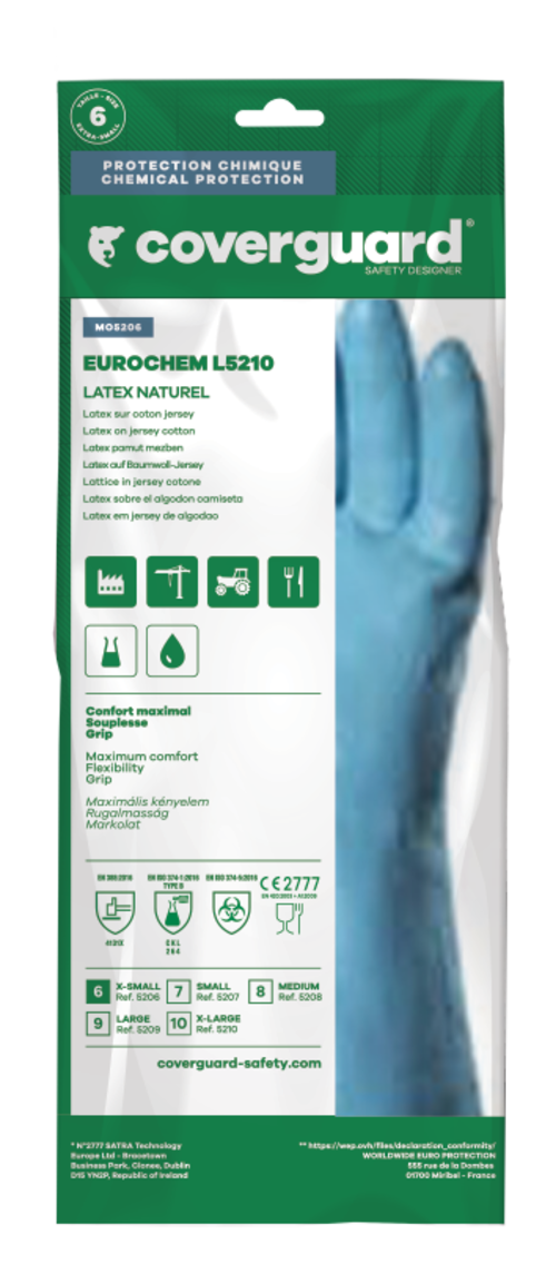 Gants EUROCHEM L5210 coton end.latex nat. bleu ép. 1.3mm – MO5210
